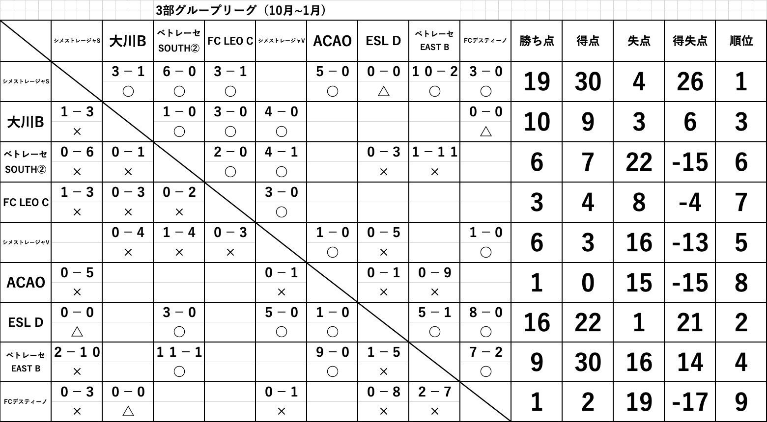 解散 ESL D(3部リーグ) 17:30頃※表彰式終了後の解散となります。